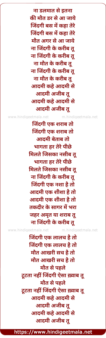 Lyrics of Na Zindagi Ke Kareeb Tu - ना डलमात से इतना