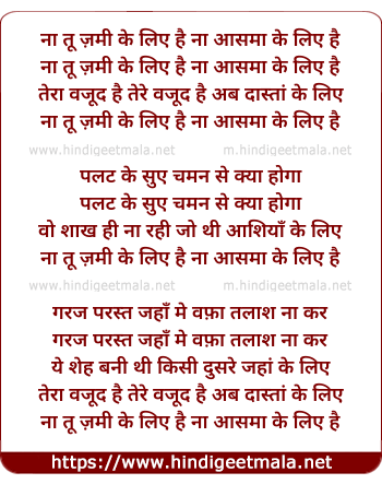 na tu jamin ke liye hai na asman ke liye