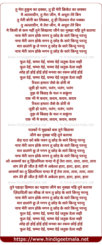 Lyrics of Naach Meri Jaan Ho Ke Magan Tu - नाच मेरी जान हो के मगन तू