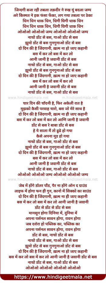 Lyrics of Naacho Dont Se Bas, Gaao Dont Se Bas - नाचो डोंट से बस, गाओ डोंट से बस