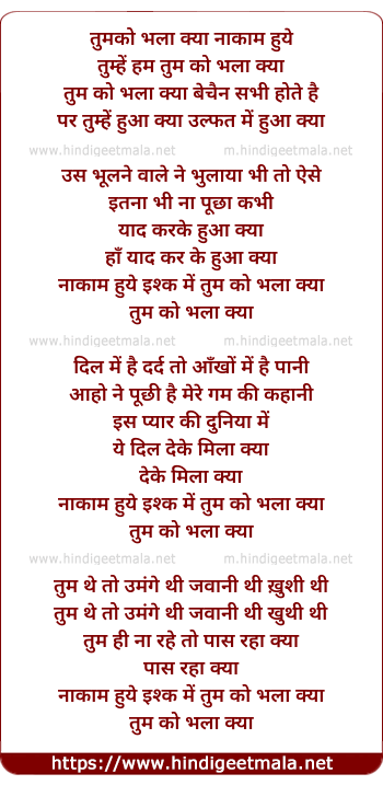 Lyrics of Naakam Hue Ishq Me Hum - तुमको भला क्या नाकाम हुये