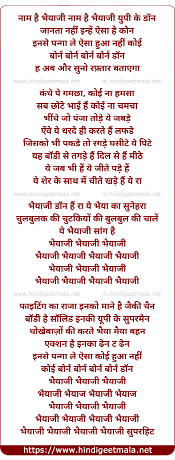 Lyrics of Naam Hai Bhaiyaji - नाम है भैयाजी