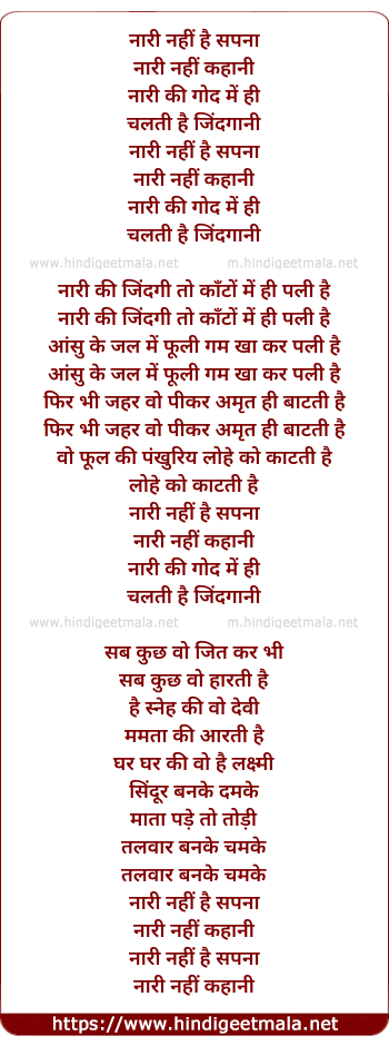 Lyrics of Naari Nahi Hai Sapna - नारी नहीं है सपना