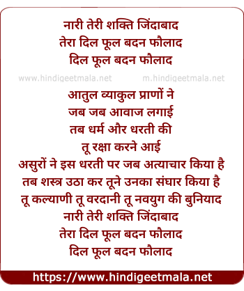 Lyrics of Naari Shakti Zindabad - नारी शक्ति जिंदाबाद