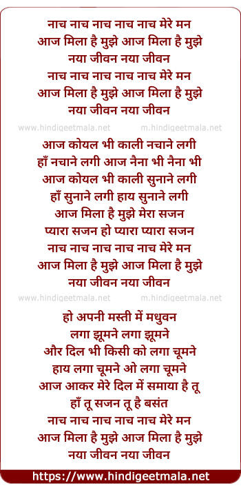 Lyrics of Nach Mere Man Aaj Mila Hai Mujhe - नाच मेरे मन आज मिला है मुझे