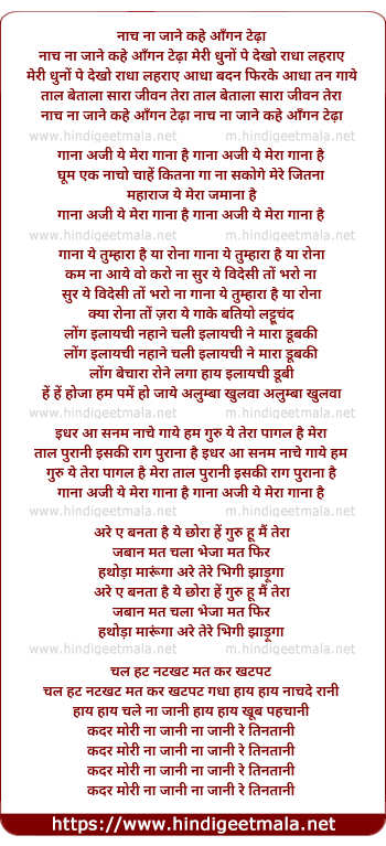 Lyrics of Nach Na Jane Kahe Aangan Tedha - नाच ना जाने कहे आँगन टेढ़ा