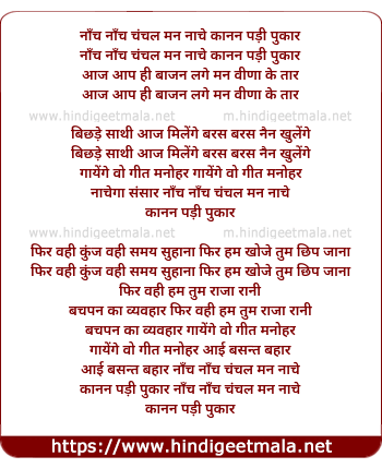 Lyrics of Nache Nache Chanchal Man Nache - नाँच नाँच चंचल मन नाचे