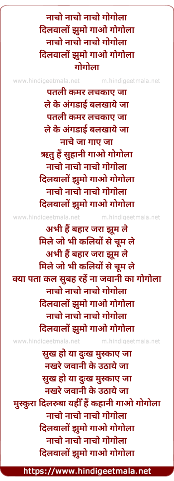 Lyrics of Nacho Nacho Gogola - नाचो नाचो नाचो गोगोला