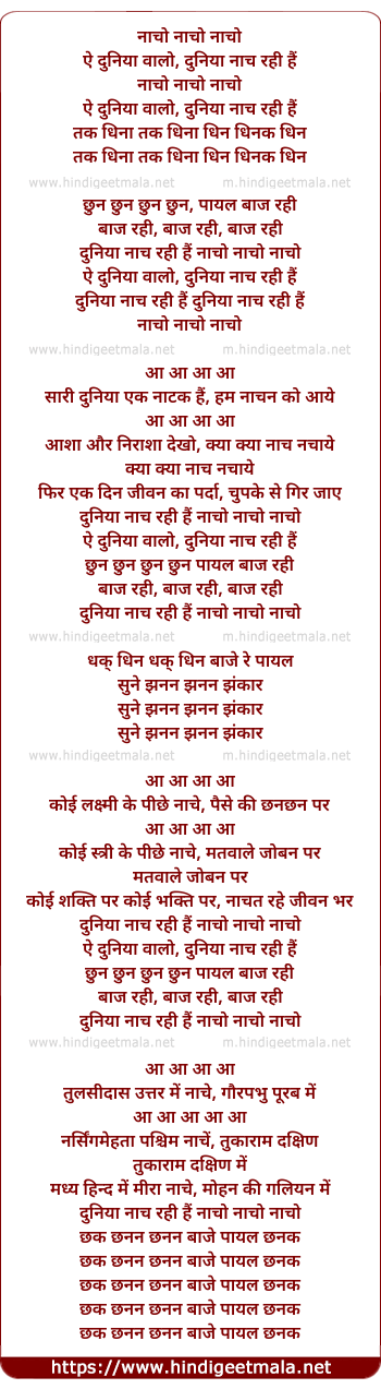 Lyrics of Nacho O Dunia Nach Rahi - नाचो ओ दुनिया नाच रही
