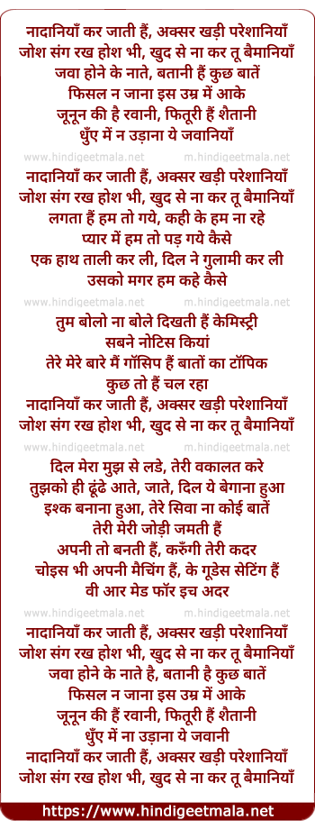 Lyrics of Nadaniyan Kar Jati Hain - नादानियाँ कर जाती हैं