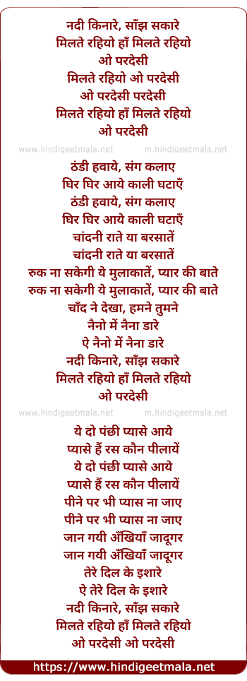 Lyrics of Nadi Kinare Sanjh Sakaare - नदी किनारे, साँझ सकारे