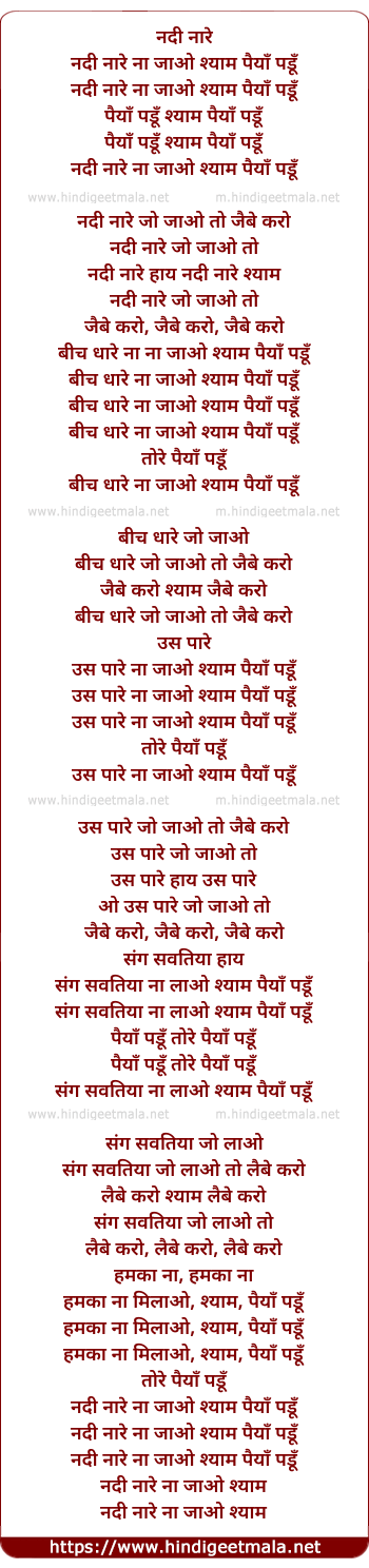 Lyrics of Nadi Naare Na Jaao Shaam Paiyaan Padun - नदी नारे ना जाओ श्याम पैयाँ पडूँ