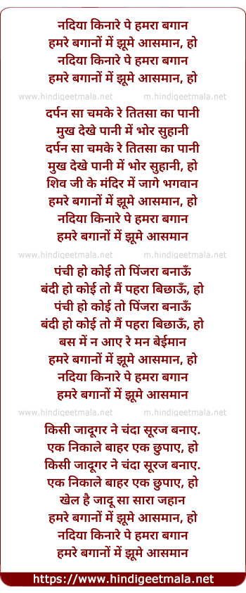 Lyrics of Nadiya Kinare Pe Hamra Bagan - नदिया किनारे पे हमरा बगान
