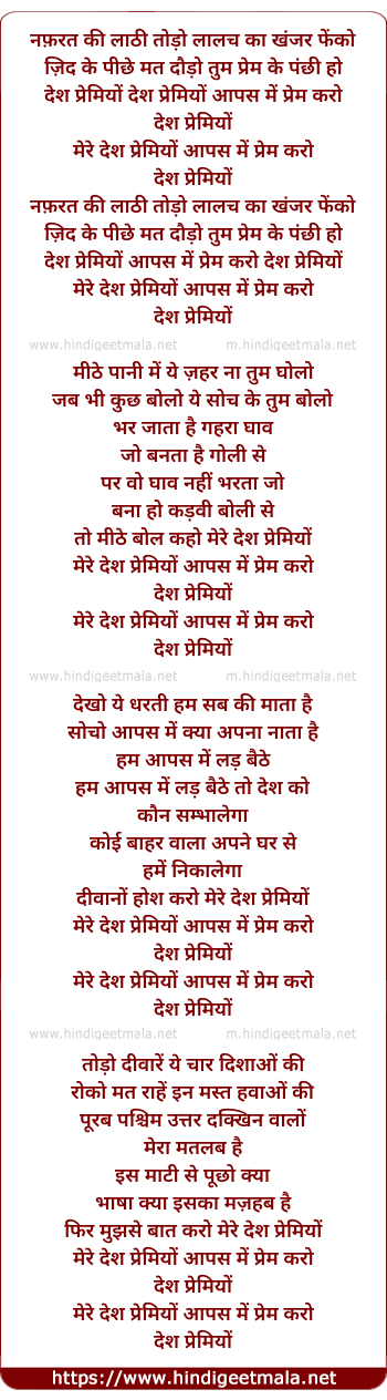 desh premiyo desh premiyo aapas me prem karo desh premiyo