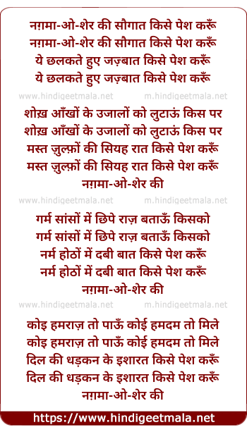 Lyrics of Nagamaa O Sher Ki Saugaat Kise Pesh Karun - नग़मा-ओ-शेर की सौगात किसे पेश करूँ