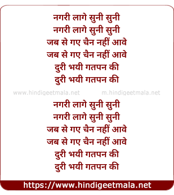 Lyrics of Nagari Laage Sooni Sooni Jab Se Gaye - नगरी लागे सुनी सुनी
