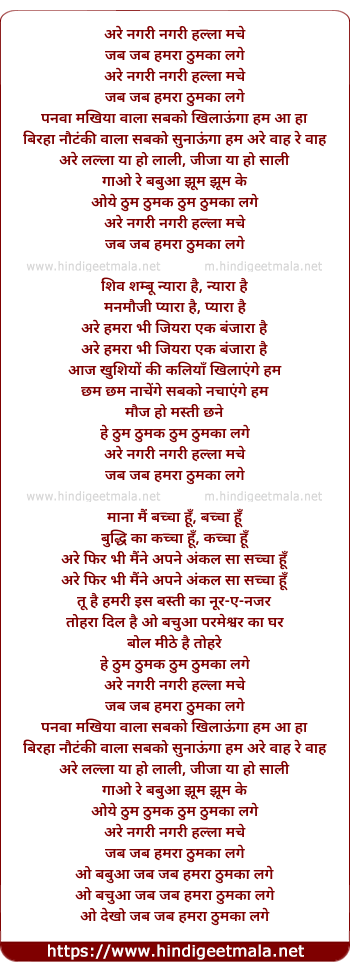 Lyrics of Nagri Nagri Halla Mache - नगरी नगरी हल्ला मचे