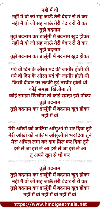 Lyrics of Nahi Mai Woh Jo Sah Jaau (2) - नहीं मैं वो जो सह जाऊँ