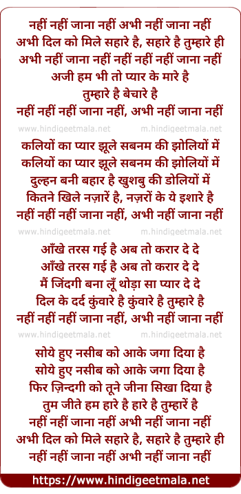 Lyrics of Nahi Nahi Jana Nahi Abhi Nahi - नहीं नहीं जाना नहीं अभी नहीं