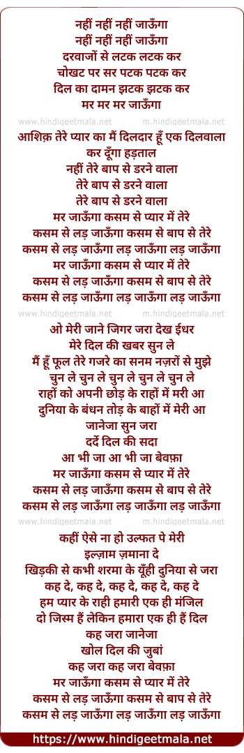 Lyrics of Nahi Nahi Jaunga - नहीं नहीं जाऊँगा