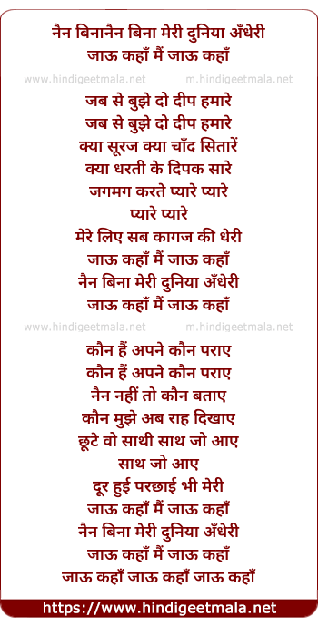 Lyrics of Nain Bina Meri Duniya Andheri - नैन बिना मेरी दुनिया अँधेरी