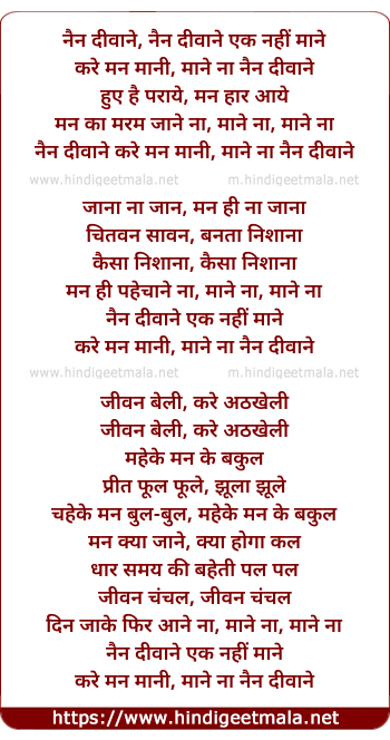 Lyrics of Nain Diwane Ek Nahi Mane - नैन दीवाने, नैन दीवाने एक नहीं माने