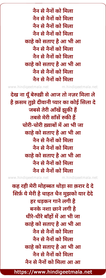 Lyrics of Nain Se Naino Ko Mila - नैन से नैनों को मिला