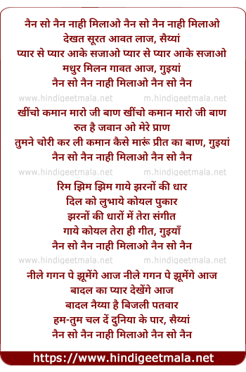 Lyrics of Nain So Nain Nahin Milao - नैन सो नैन नाही मिलाओ
