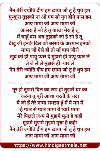 Lyrics of Nain Teri Jyotee - नैन तेरी ज्योति