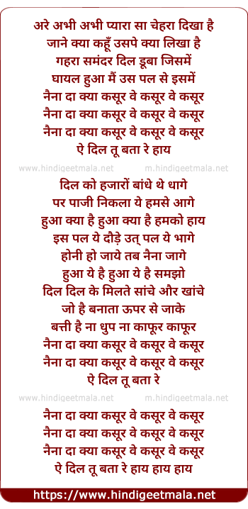 Lyrics of Naina Da Kya Kasoor - नैना दा क्या कसूर