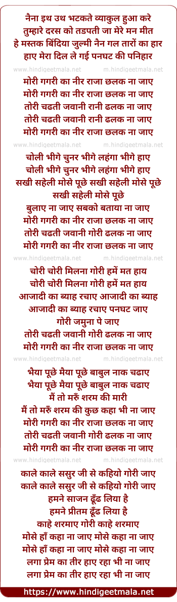 mori gagari ka neer raja chalak na jaye