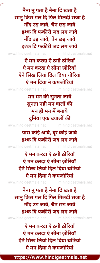 Lyrics of Naina Nu Pata Hai - नैना नु पता है