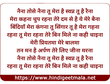 Lyrics of Naina (Rudhramadevi) - नैना तोसे नैना तू मेरा है स्वप्न तू है रैना