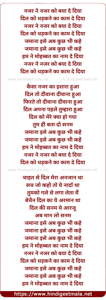 Lyrics of Najar Ne Najar Ko Beya De Diya - नजर ने नजर को बया दे दिया