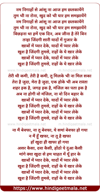 khush hai jindagi tumse, raahon ke ye khaar leke