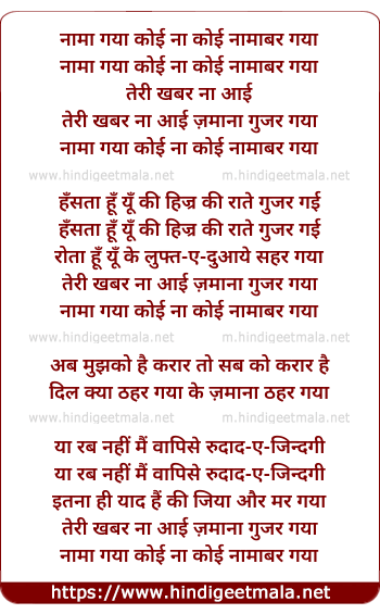 Lyrics of Nama Gaya Koi Na Koi - नामा गया कोई ना कोई नामाबर गया