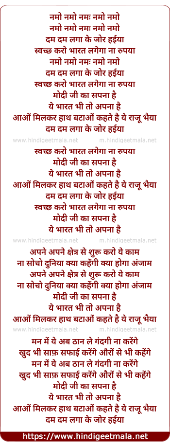Lyrics of Namo Namo - नमो नमो नमः नमो नमो