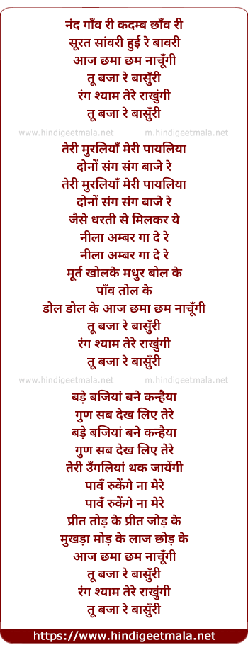 Lyrics of Nand Ganv Ri Kadamb Chhanv Rii - नंद गाँव री कदम्ब छाँव री