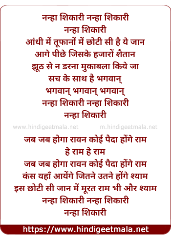 Lyrics of Nanha Shikari, Nanha Shikari - नन्हा शिकारी, नन्हा शिकारी