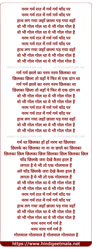 Lyrics of Naram Garam Raat Me Garm Garm Chand Par - नरम गर्म रात में गर्म गर्म चाँद पर
