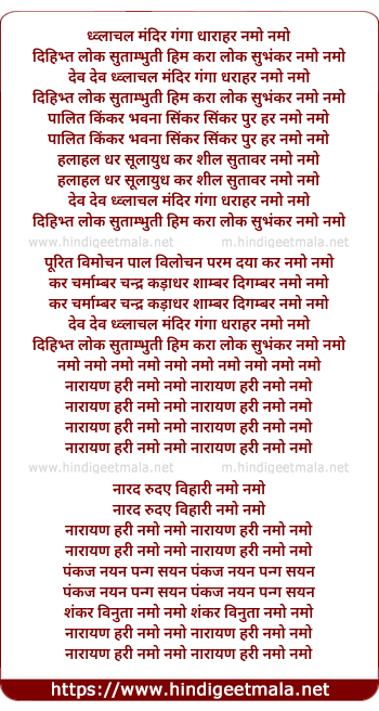 Lyrics of Narayan Hari Namo Namo - नारायण हरी नमो नमो