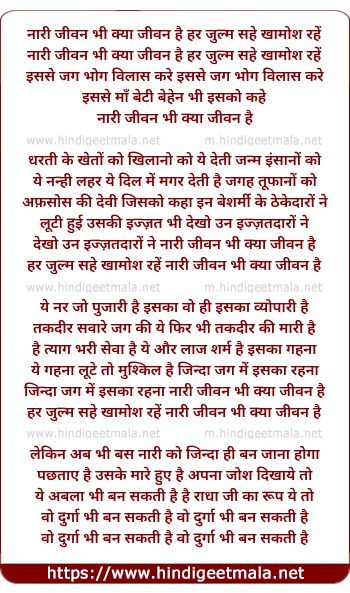 Lyrics of Nari Jeevan Bhi Kya Jeevan Hai - नारी जीवन भी क्या जीवन है