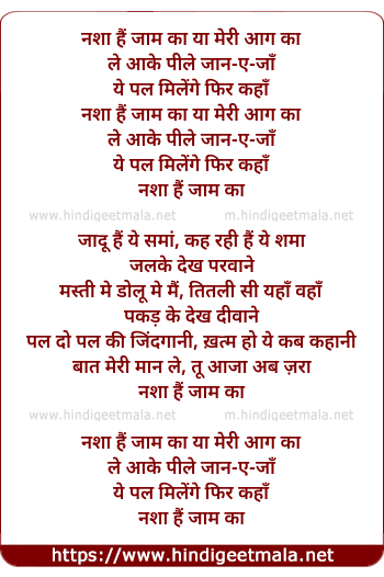 Lyrics of Nasha Hain Jaam Ka - नशा हैं जाम का