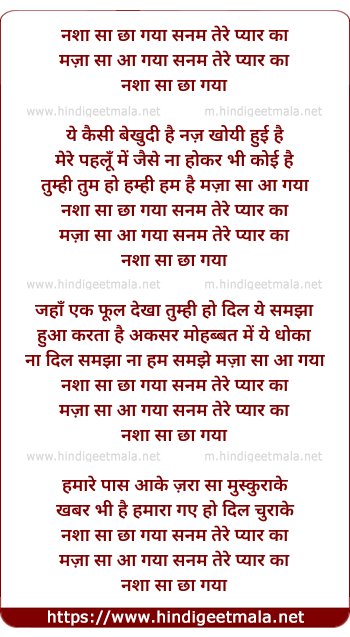 Lyrics of Nasha Sa Cha Gaya Sanam - नशा सा छा गया सनम तेरे प्यार का