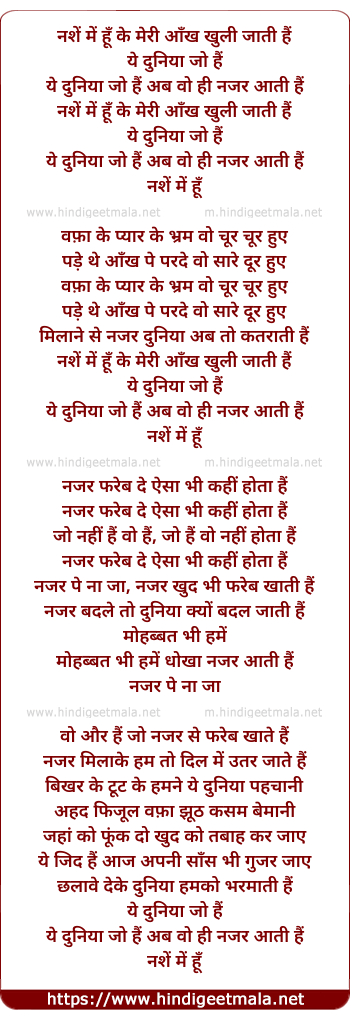Lyrics of Ye Duniya Jo Hai Ab Wo Hi Najar Aati Hai - ये दुनिया जो हैं अब वो ही नजर आती हैं
