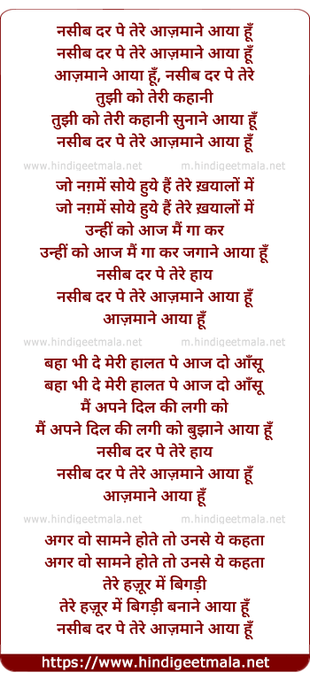 Lyrics of Nasib Dar Peh Tere Aajmane Aaya Hu - नसीब दर पे तेरे आज़माने आया हूँ