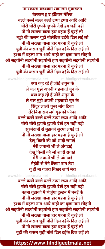 Lyrics of Nau Nau Lakkhaan Vaalaa Haar Pahanaa Hai - नौ नौ लख्खा वाला हार पहना हैं