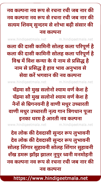Lyrics of Nav Kalpanaa Nav Rup Se Rachanaa Rachi Jab Naar Ki - नव कल्पना नव रूप से रचना रची जब नार की