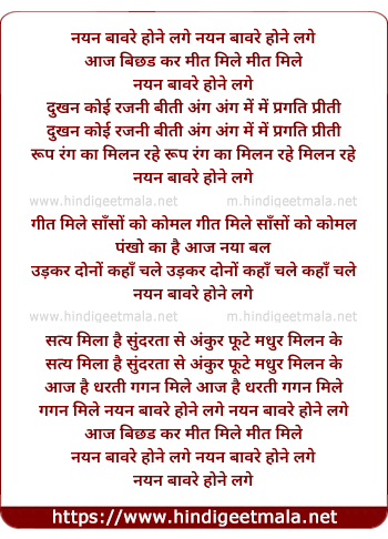 Lyrics of Nayan Baaware Hone Lage - नयन बावरे होने लगे