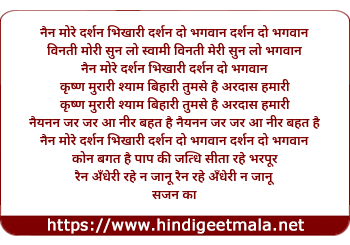 Lyrics of Nayan More Darshan Bhikhari - नैन मोरे दर्शन भिखारी दर्शन दो भगवान दर्शन दो भगवान